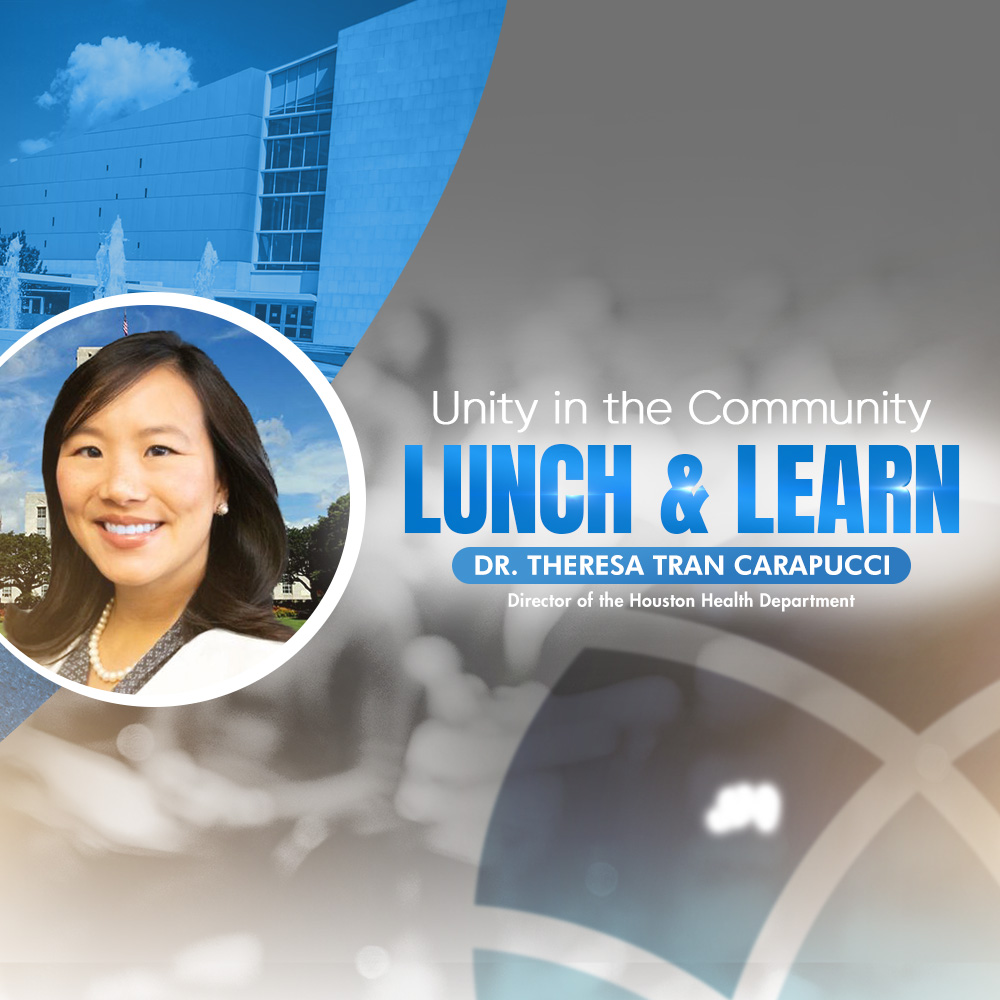 Join us after the Sunday Service for lunch and an informative presentation by the Director of the Houston Health Department, Dr. Theresa Tran Carapucci.