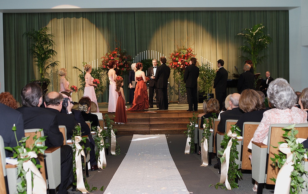 As you turn onto Unity Drive from Richmond Ave. and look straight ahead,Ā you will seeĀ a majestic, unexpected surprise:Ā our beautiful SanctuaryĀ and Tower of Light.Ā Our main sanctuary has a seating capacity of 750 downstairs, large enough to hold an elaborate, elegant ceremony or accommodate a smaller guest count by confining the seating to the front and/or mid-section.Ā This elegant setting with its glass-walled interior allows natural light to flow in, creating a beautiful environment for your special event.